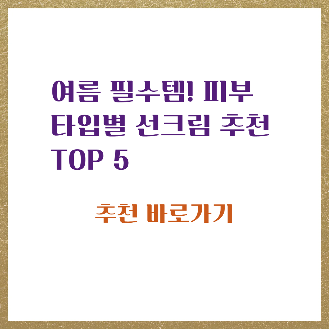 피부 타입별 선크림 추천 TOP 5